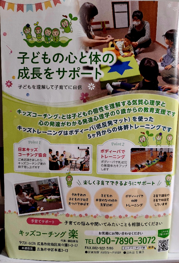 広島市の「キッズコーチング楽」は、体操教室や各種講座のほか、子育て中のパパママからの育児相談もお受けしています🌈