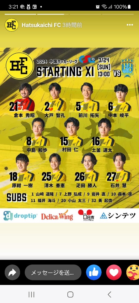 この日曜日 廿日市FCのトップチームの